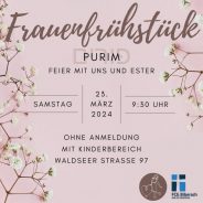Frauenfrühstück Datum:23. März 2024Uhrzeit:9:30 - 12:00Ort:Freie ChristengemeindeAdresse:Waldseer Straße 97, 88400 Biberach Feier mit uns und Ester! (ohne Anmeldung, mit Kinderbereich)