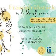 Frauenfrühstück „Ich darf sein“ Datum:15. Juni 2024Uhrzeit:9:30 - 12:00Ort:Freie ChristengemeindeAdresse:Waldseer Straße 97, 88400 Biberach (ohne Anmeldung, mit Kinderbereich)