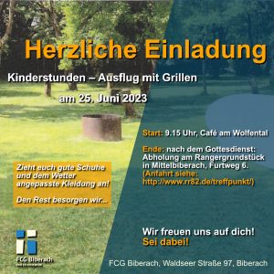 Kinderstundenausflug mit Grillen Datum:25. Juni 2023Uhrzeit:9:30Ort:Freie ChristengemeindeAdresse:Waldseer Straße 97, 88400 Biberach (Foto: © Freepik)