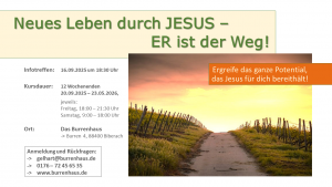 Dieses Jüngerschafts-Seminar ist eine Einladung für Christen, die das erstaunliche Potential ergreifen wollen, das JESUS am Kreuz für unser NEUES LEBEN bereitgelegt hat. Auf diesem Weg…